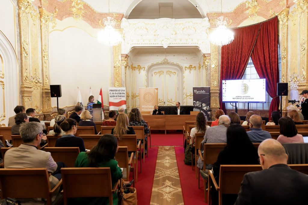 Hol van a helye a korunkat jellemző médiazajban a keresztény tartalomnak? Hogyan nyilváníthatjuk ki hitbéli meggyőződésünket, és meghallja-e valaki, ha annak mentén szólalunk meg? Válhat-e a közönségünkből közösség? Ezen kérdések mentén rendezte 2025. évi konferenciáját a Protestáns Újságírók Szövetsége (Prúsz). A Nemzeti Média- és Hírközlési Hatóság (NMHH) támogatásával megvalósult rendezvénynek október 21-én a Károli Gáspár Református Egyetem jóvoltából a Károlyi–Csekonics-palota adott helyet.