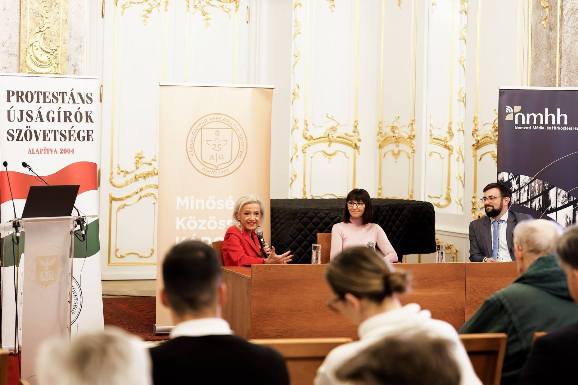 Hol van a helye a korunkat jellemző médiazajban a keresztény tartalomnak? Hogyan nyilváníthatjuk ki hitbéli meggyőződésünket, és meghallja-e valaki, ha annak mentén szólalunk meg? Válhat-e a közönségünkből közösség? Ezen kérdések mentén rendezte 2025. évi konferenciáját a Protestáns Újságírók Szövetsége (Prúsz). A Nemzeti Média- és Hírközlési Hatóság (NMHH) támogatásával megvalósult rendezvénynek október 21-én a Károli Gáspár Református Egyetem jóvoltából a Károlyi–Csekonics-palota adott helyet.
