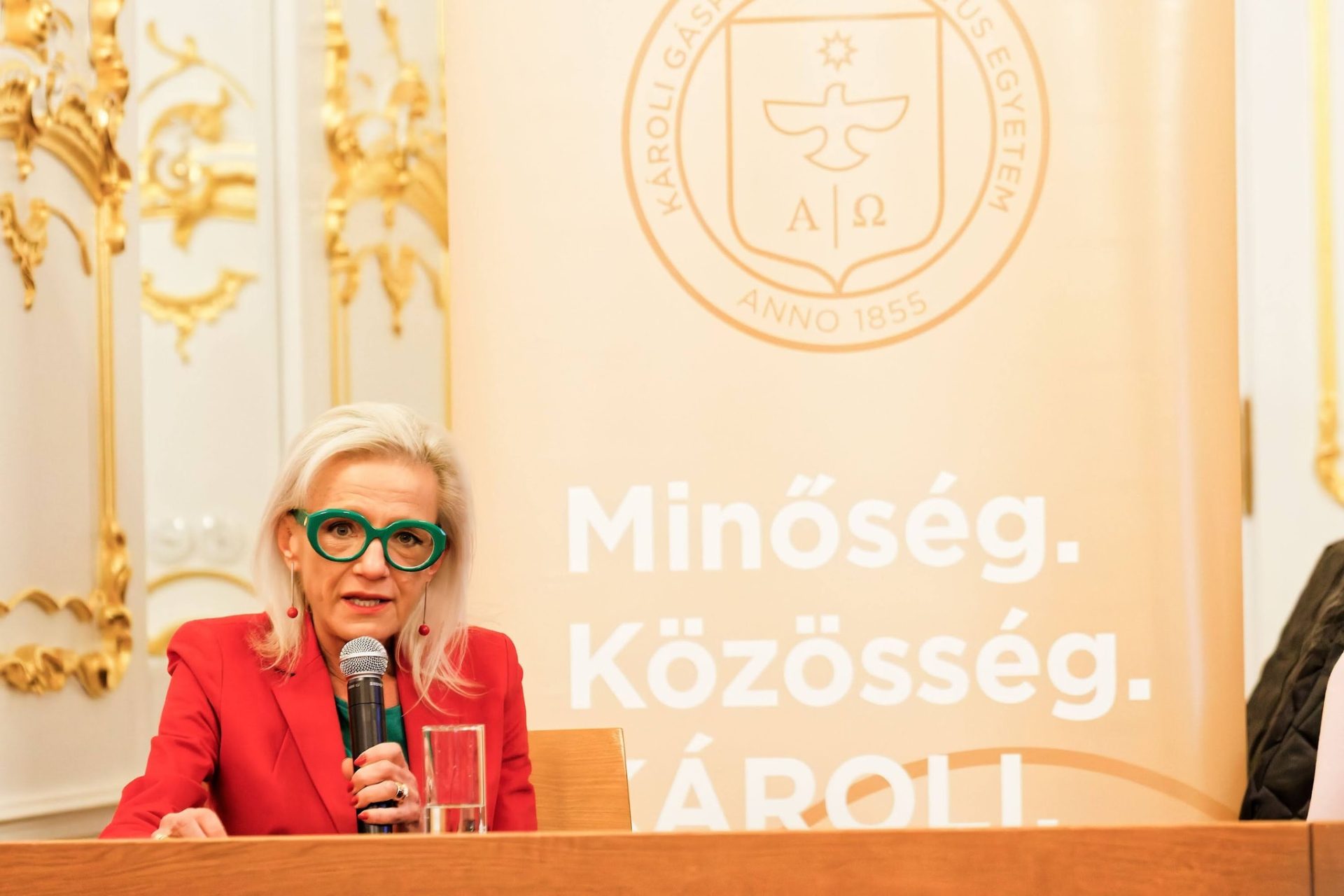 Akár egyetlen ember előtt állunk, akár kamerák, mikrofonok rögzítik a szavainkat, fel kell ismernünk, mikor van lehetőség megvallani a hitünket – ezzel a gondolattal nyitotta meg a konferenciát Volf-Nagy Tünde, a Prúsz elnöke, miután egy egészen személyes történetet osztott meg arról, hogy nemrégiben egy halálos beteg barátnője várt bizonyságtételt tőle, mert abba akart kapaszkodni a rá váró nehéz út előtt.