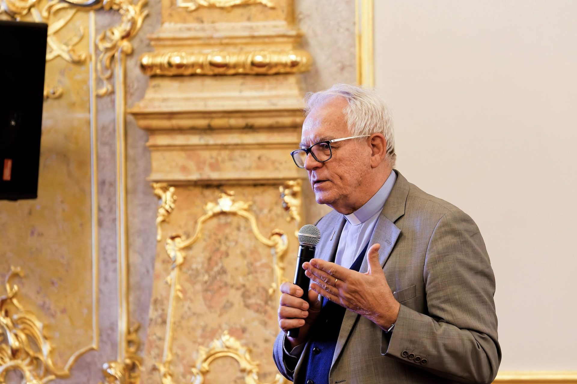 „Hogyan lehet azt az Urat szolgálni a médiában, aki az út, az igazság és az élet?” – tette fel a kérdést köszöntője elején Galambos István, az NMHH Médiapiaci Együttműködési és Kutatási Igazgatóságának igazgatóhelyettese. Majd Jézus szavait idézte abból a történetből, amikor kiküldte a tanítványait a világba. Nem azt kérte tőlük, hogy tegyék fel a kezüket, és várják meg, míg felfalják őket a farkasok, hanem arra biztatta őket: legyenek okosak, mint a kígyók, és szelídek, mint a galambok (vö. Mt 10,16). Ez a két tulajdonság bennünk is egyszerre kell, hogy jelen legyen. Az okos és szelíd emberek, illetve az ilyen szavak a médiában is kovászként szolgálhatnak.