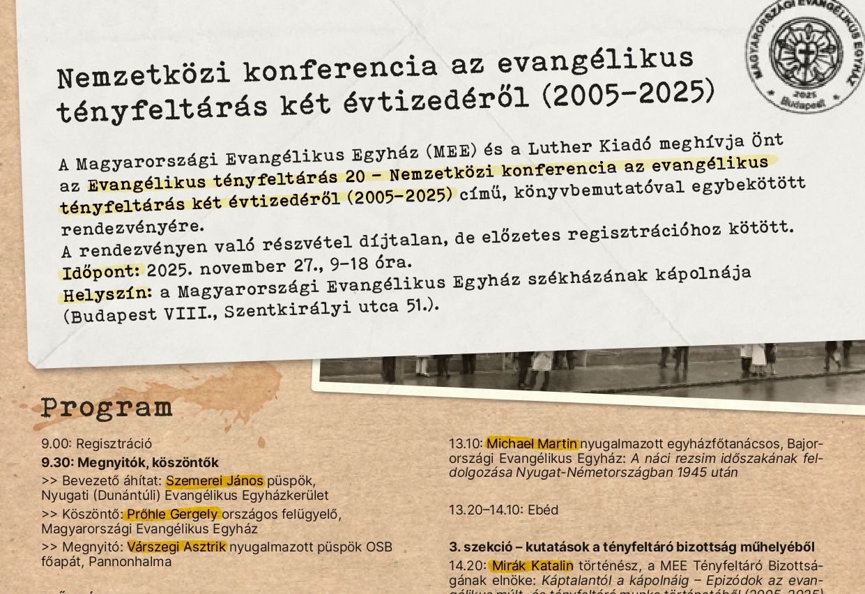 Evangélikus tényfeltárás 20 – Nemzetközi konferencia az evangélikus tényfeltárás két évtizedéről (2005–2025)